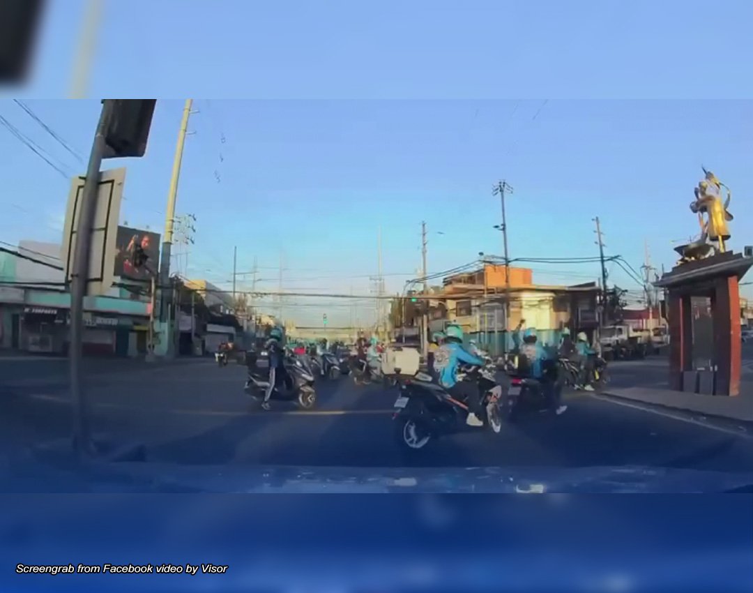 Sa viral video, makikitang hinarang ng mga rider ang mga motorista sa isang intersection sa Cainta, Rizal para padaanin ang ilang kasamahan nilang rider.