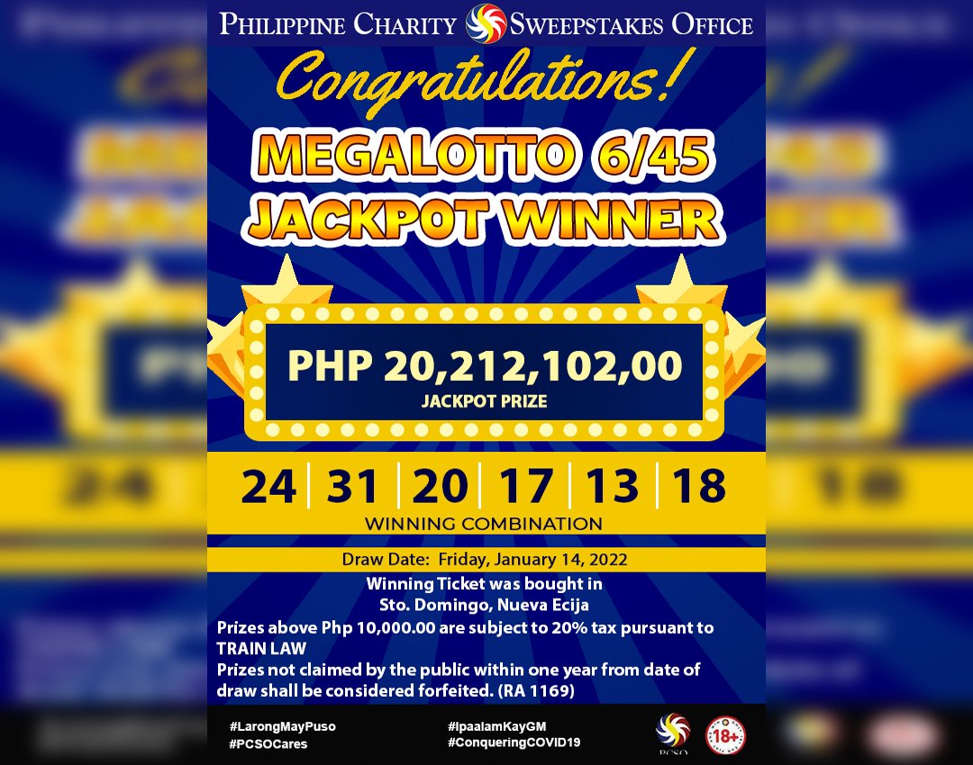 MEGA LOTTO 6/45 JACKPOT WINNER