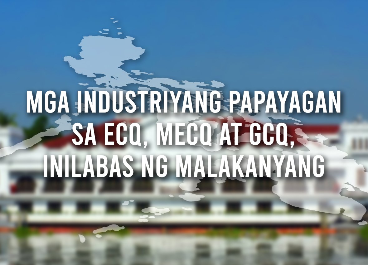INISA-isa ng Malakanyang ang mga industriya na papayagan na sa mga lugar na nasa ilalim ng ECQ, Modified ECQ at GCQ.