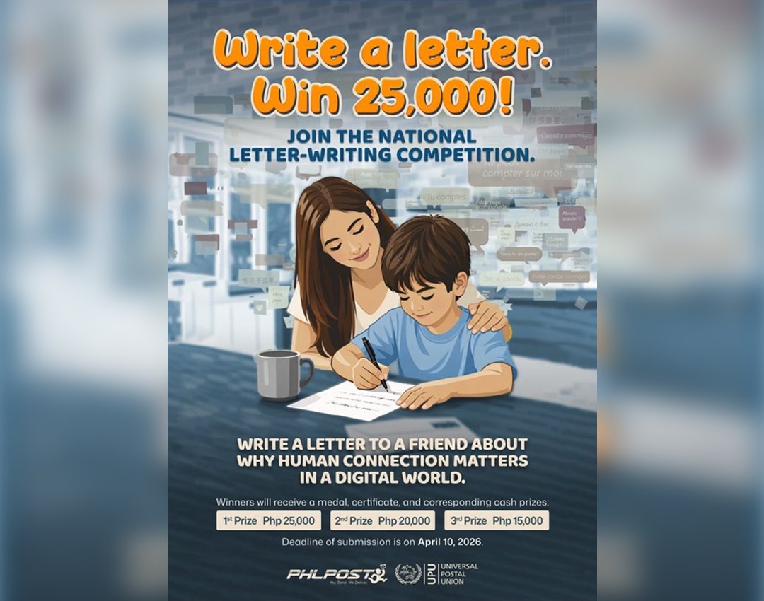 INAANYAYAHAN ng Philippine Postal Corporation ang mga mag-aaral na edad 9 hanggang 15 na lumahok sa 55th Universal Postal Union International Letter Writing Competition for Young People hanggang Abril 10, 2026.