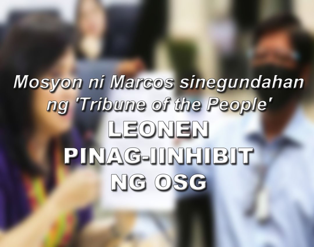 NAGHAIN ang Office of the Solicitor General (OSG) ng “omnibus motion” sa Presidential Electoral Tribunal (PET) na humihiling ng kagyat na pagpapatanggal kay Associate Marvic Leonen sa patuloy na paghawak nito sa protestang elektoral ni dating Senador Ferdinand “Bongbong” Marcos Jr. laban kay Bise Presidente Maria Leonor Robredo dahil ‘consistent’ ang mahistrado sa pagtuligsa at paglaban sa pamilya Marcos at mga kaibigan nito.