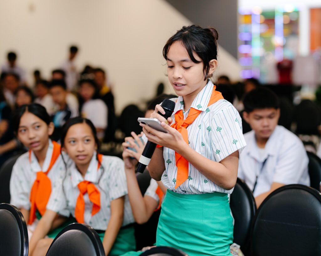 A student advocate raises a powerful question at the Global Youth Summit 2025 in SM City Butuan— amplifying youth voices for meaningful community change.