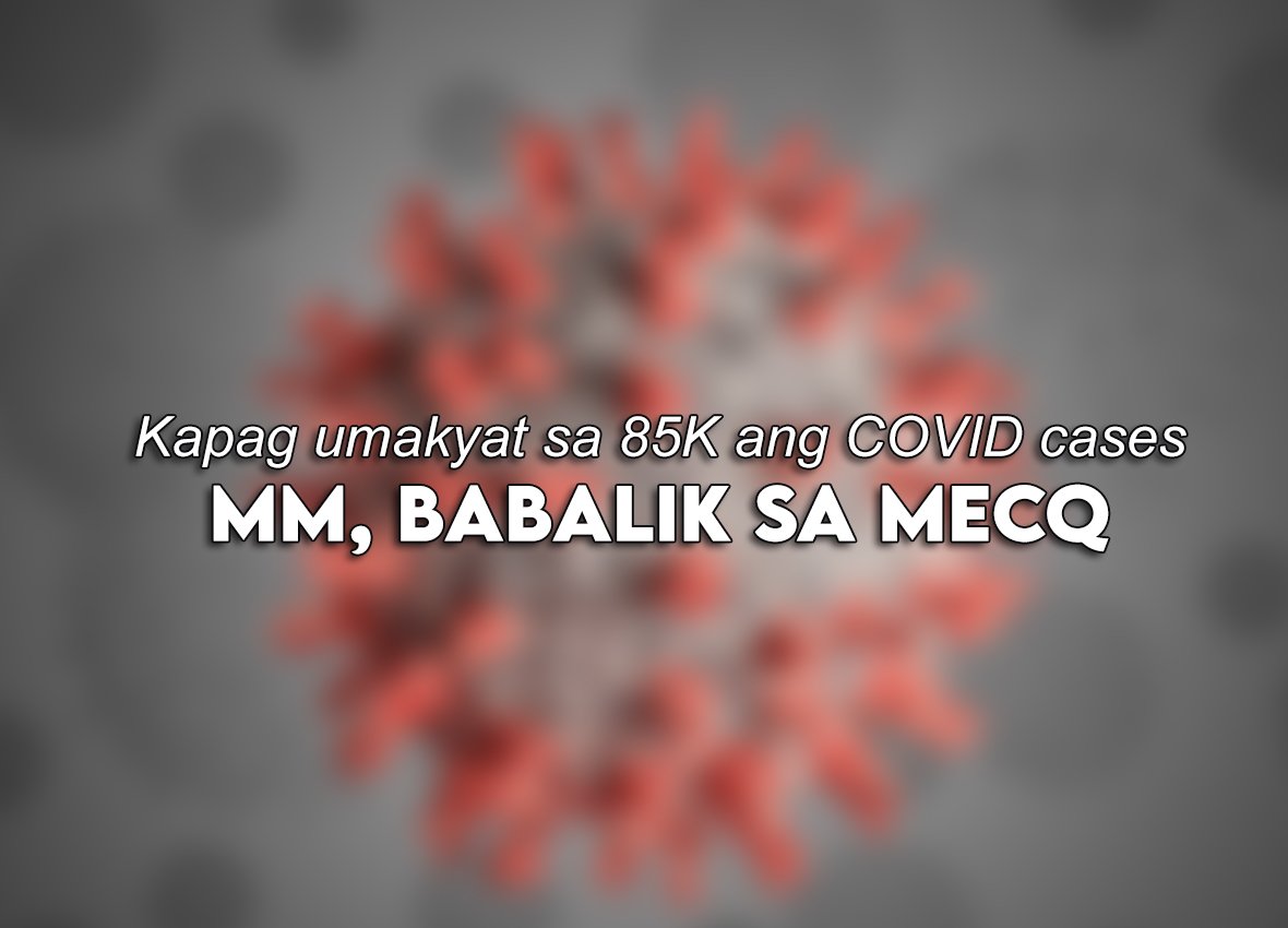 MAAARING ibalik ang Metro Manila sa modified enhanced community quarantine (MECQ) kapag ang kaso ng COVID-19 sa bansa ay umabot sa 85,000 gaya ng pinroject ng mga eksperto mula sa University of the Philippines (UP).