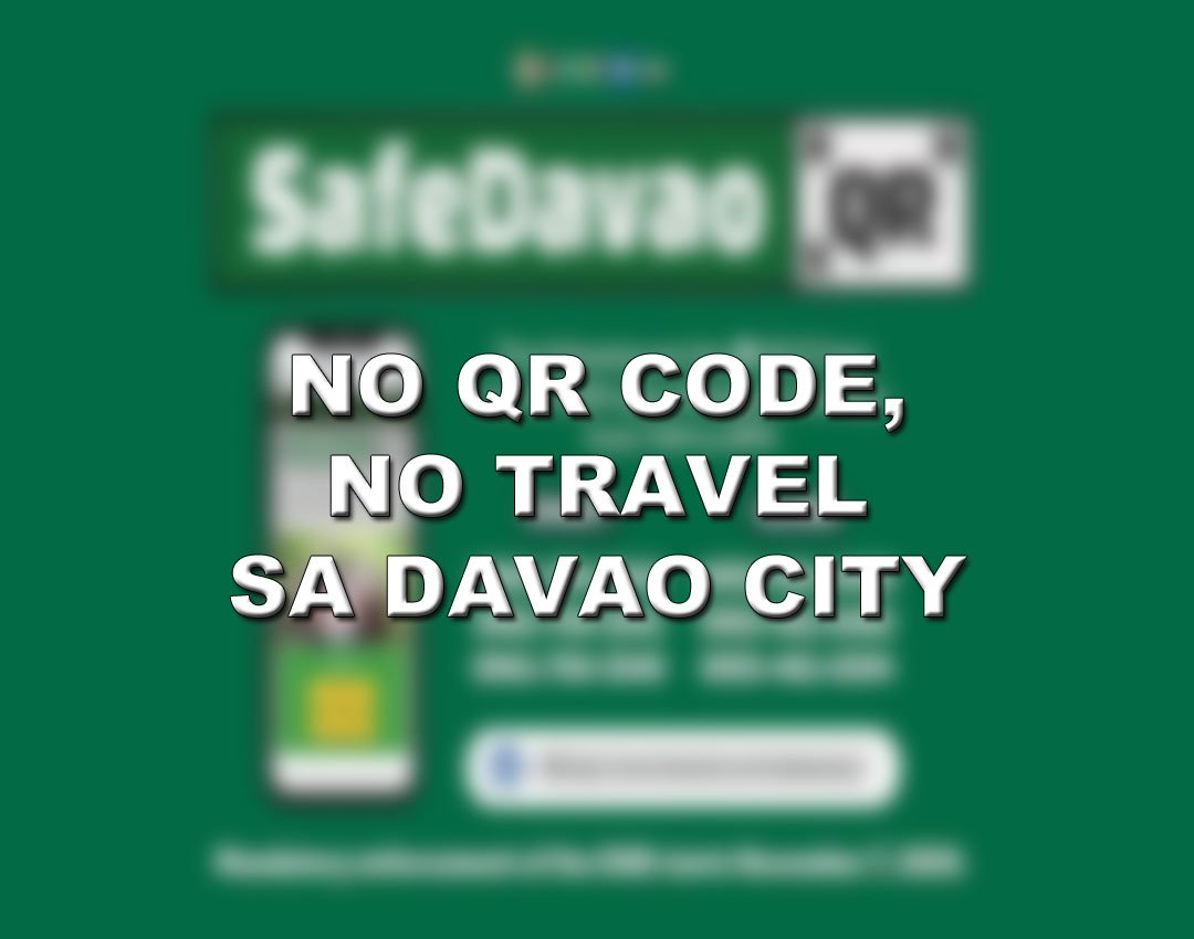 DAVAO CITY – Ipatutupad ng mga awtoridad ang “No QR code, no travel” policy sa buong lungsod simula sa Nobyembre 7, 2020.