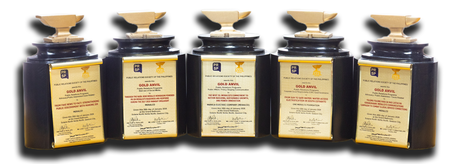 Nakasungkit ang kumpanya ng limang (5) Gold Anvil para sa mga kampanyang nakasentro sa epektibong paggamit ng digital communications, public service, media & information literacy at electrification program.