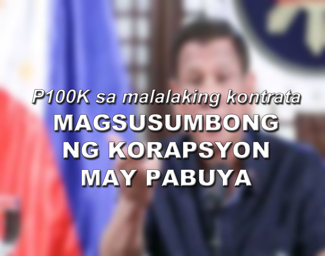 Sa public address ng pangulo, Martes ng gabi ay sinabi nito na ang sinomang indibiduwal na makapagbibigay ng impormasyon hinggil sa maliit na kontrata ay makatatanggap ng P50,000 habang ang makapagbibigay naman ng impormasyon ukol sa malaking kontrata ay makatatanggap ng P100,000.