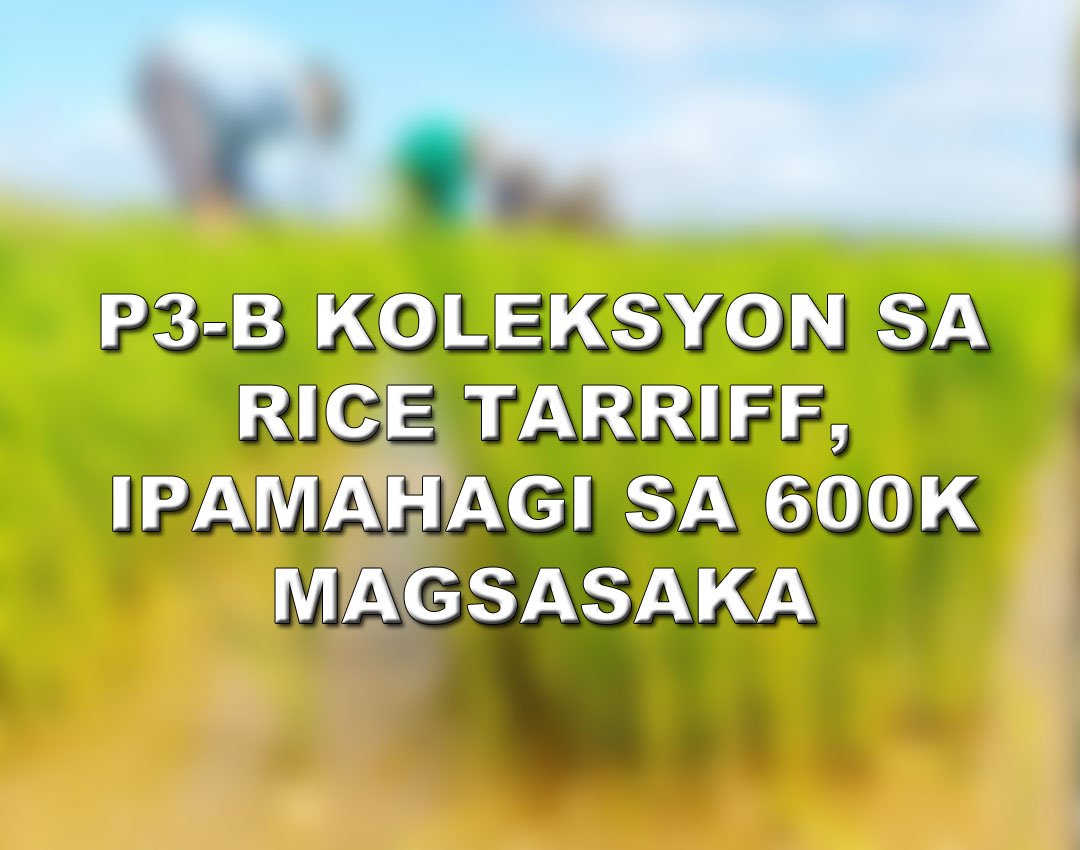 AABOT sa 600,000 rice farmers ang makatatanggap ng P5,000 bawat isa kung maisasama ang P3 bilyong sobra sa koleksyon ng Bureau of Customs (BOC) sa ilalim ng Rice Tariffication Law sa cash assistance sa ilalim ng General Appropriations Act (GAA).