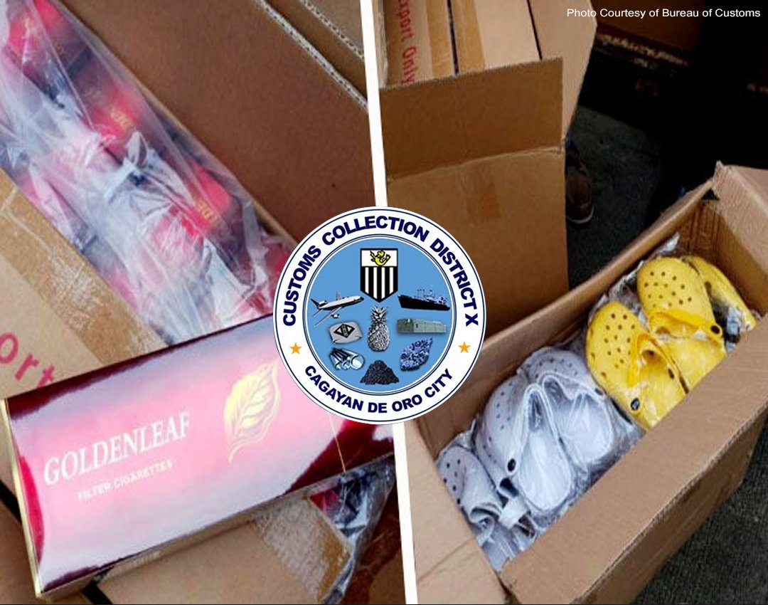 Huli sa Bureau of Customs Port of Cagayan de Oro ang isang shipment mula China na mga smuggled cigarettes na unang idineklarang personal effects tulad ng foot wares.