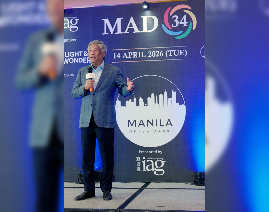PAGCOR Chairman and CEO Alejandro H. Tengco on Tuesday, April 14, addresses gaming industry stakeholders during the 34th Manila After Dark networking event, hosted by Inside Asian Gaming.