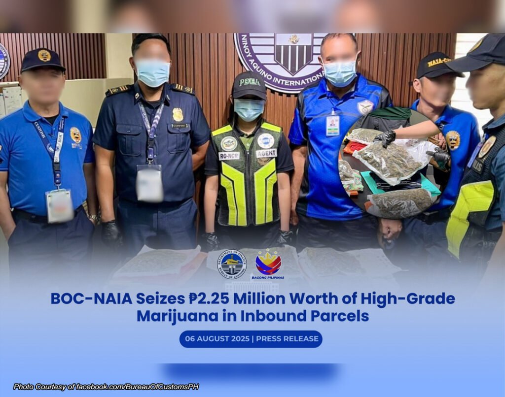 KATUWANG ang Philippine Drug Enforcement Agency (PDEA), nasabat ng mga tauhan ng Bureau of Customs-Ninoy Aquino International Airport (BOC-NAIA) at NAIA Inter-Agency Drug Interdiction Task Group (NAIA-IADITG), ang anim na pakete na naglalaman ng high-grade variant ng marijuana o kush na tinatayang nagkakahalaga ng P2,253,800. Ayon sa ulat na ipinarating sa tanggapan ni BOC Commissioner Ariel Nepomuceno, sa iba’t ibang consignee nakapangalan ang anim na parcel na tinangkang ipuslit sa Central Mail Exchange Center (CMEC) sa Pasay City. Matapos na markahan na kahinahinalang parsela ay lumitaw sa isinagawang physical examination…