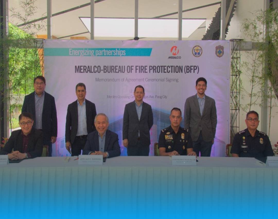 Sa ilalim ng Memorandum of Agreement (MOA) na pinirmahan ng Meralco at BFP kamakailan, magtutulungan ang dalawa sa pagbuo, pagsasanay, at pagpapatakbo ng fire brigade team na itatalaga sa loob ng Meralco Operating Center sa Pasig City.
