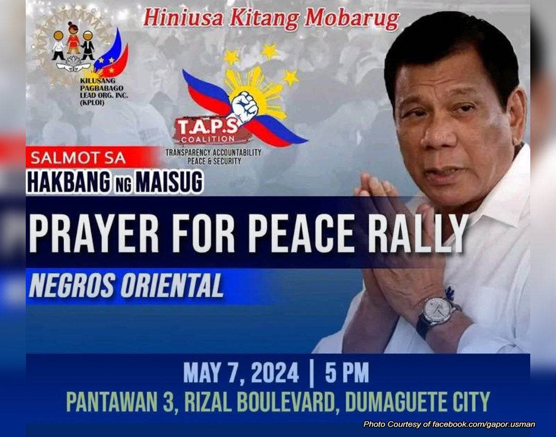 Nabatid ng SAKSI Ngayon na muling magdaraos ng Hakbang ng Maisug prayer for peace rally sa Martes (May 7) ng hapon sa Dumaguete City, Negros Oriental.