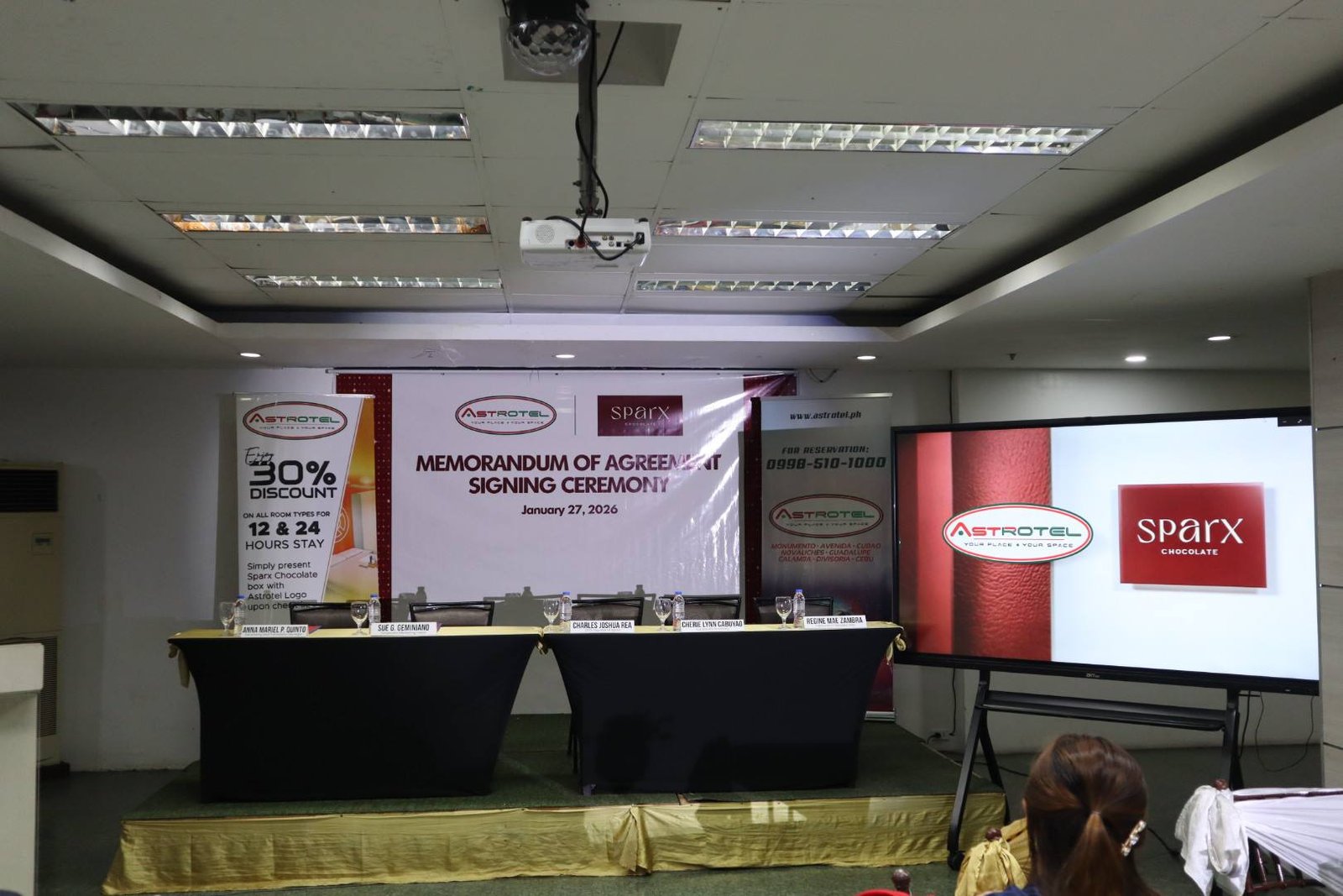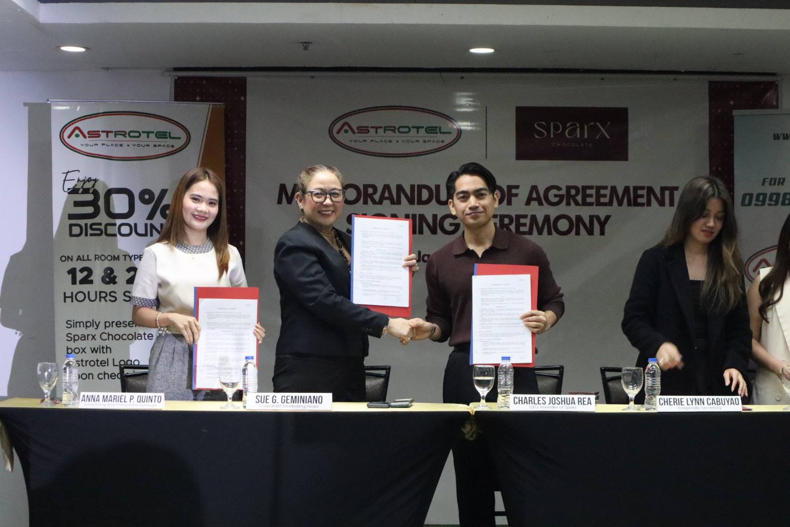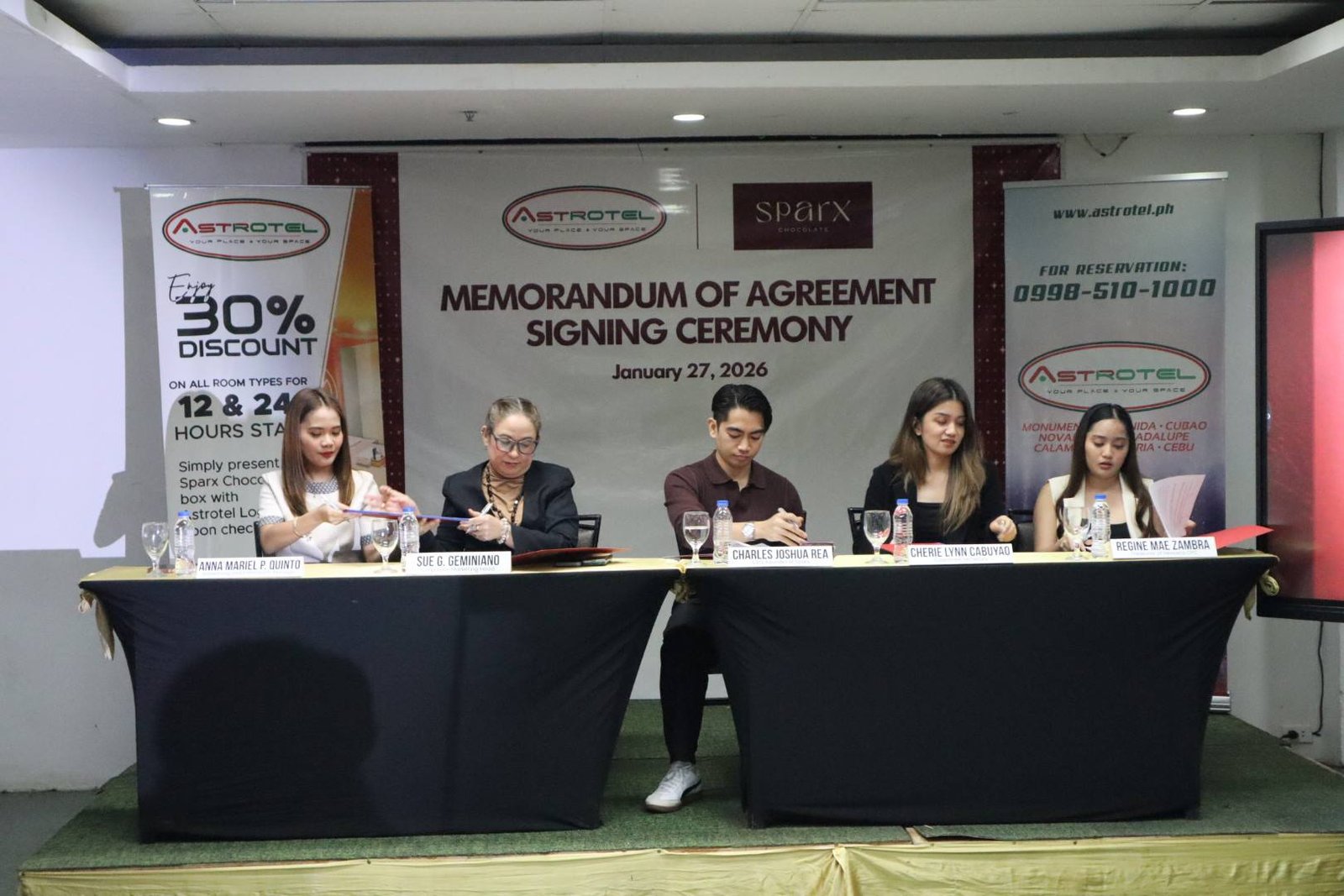 NAGKAROON ng Memorandum of Agreement (MOA) Signing Ceremony ang ASTROTEL at SPARX Chocolate sa pagitan ng mga opisyal nito na ginanap sa Eurotel Cubao-Vivaldi dakong alas-3 ng hapon ng Martes, Enero 27, 2026.