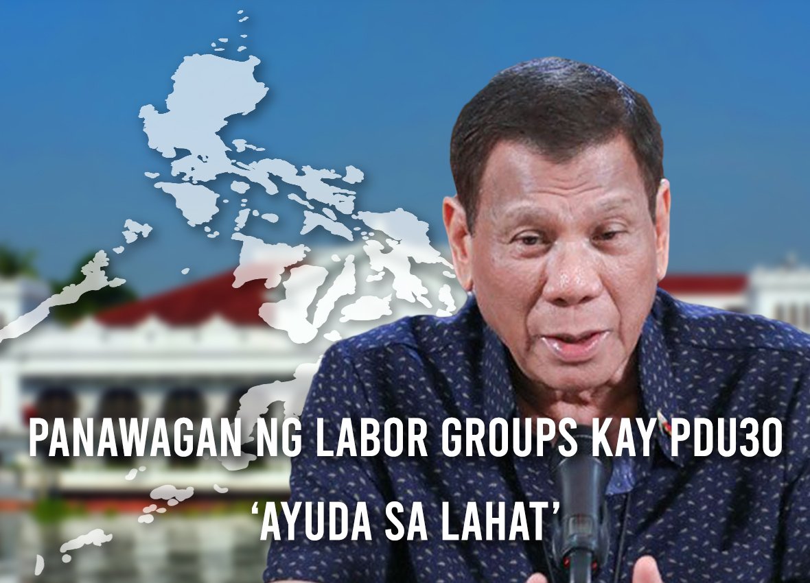 NANAWAGAN ang pinakamalaking alyansa ng mga unyon at organisasyon ng mga manggagawa sa bansa kay Pangulong Rodrigo Duterte na bigyan ng ayudang-pinansiyal ang lahat ng mamamayang Filipino maliban sa mga milyonaryo.