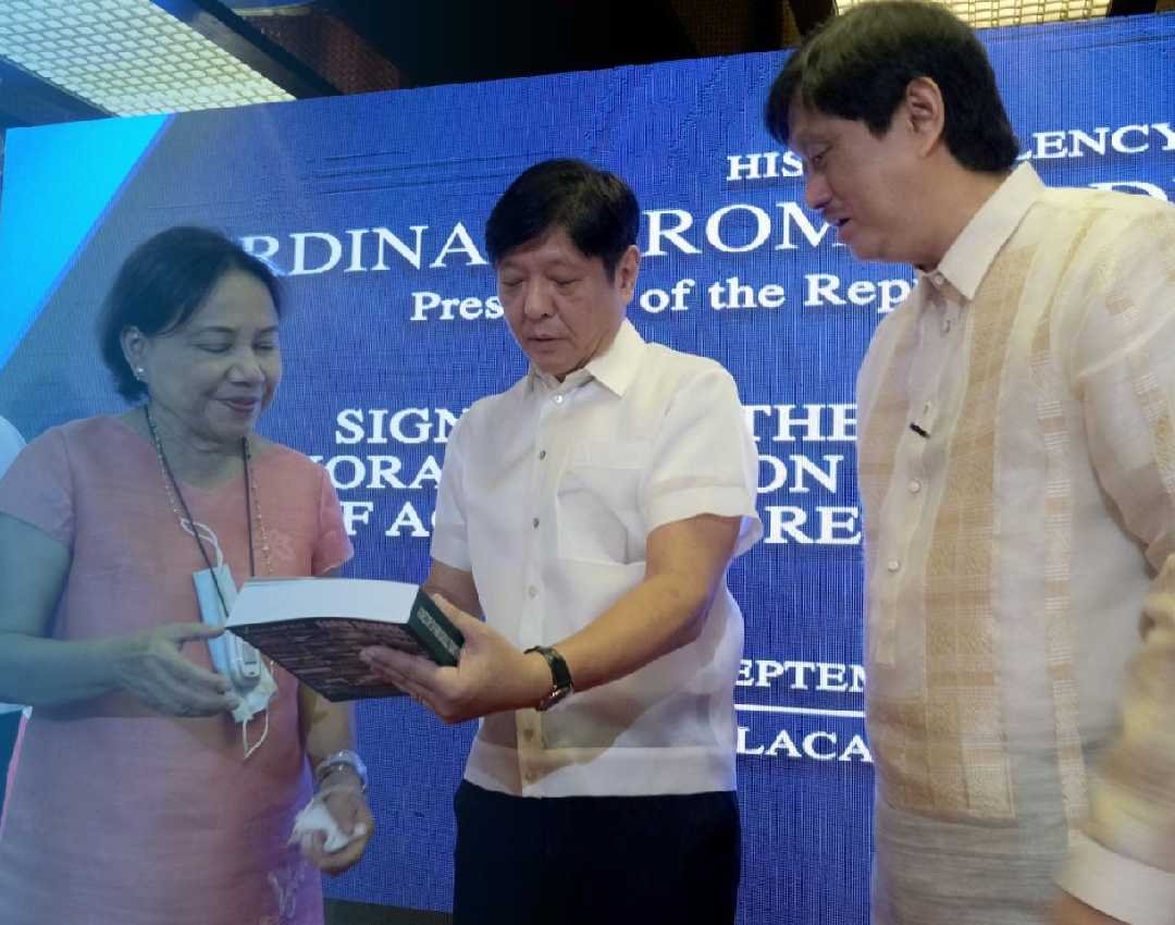 Tinanggap ni Pangulong Marcos ang libreo sa ginanap ng signing ceremony ng executive order hinggil sa Moratorium on the Annual Amortization of Agrarian Reform Beneficiaries, nitong September 13, 2022, sa Malacanang.