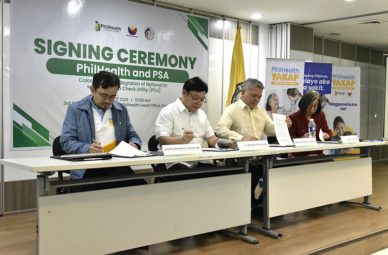 The Philippine Health Insurance Corporation (PhilHealth) and the Philippine Statistics Authority (PSA) have strengthened their partnership to modernize systems, prevent fraudulent claims, and ensure benefits reach every Filipino, with the signing of a Memorandum of Agreement (MOA) for the Philippine Identification System (PhilSys) co location and the launch of the PhilHealth Check Utility (PCU) today, March 26.