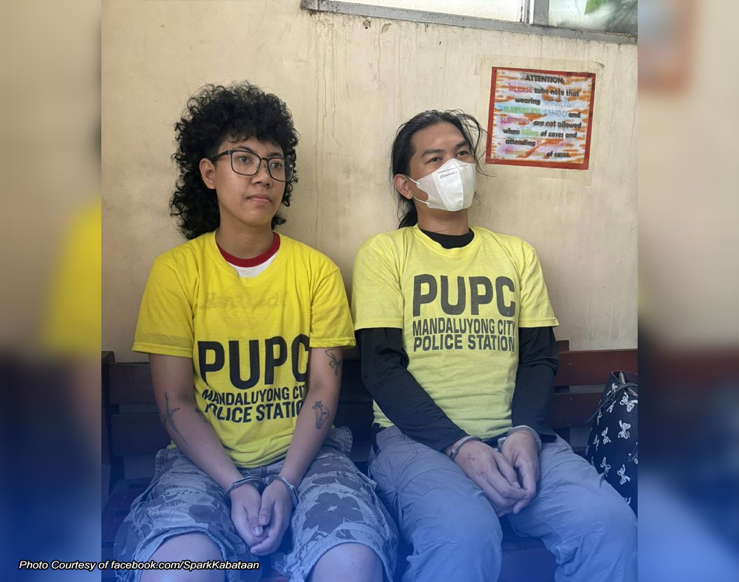Ayon sa PNP, hinuli ang dalawa matapos umanong mangbato sa hanay ng mga pulis at pigilan ang daloy ng trapiko sa EDSA southbound lane patungong EDSA Shrine.