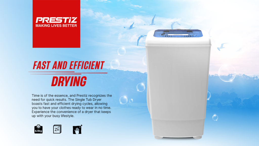 In the whirlwind of a mom’s year-round lifestyle, Prestiz understands the importance of providing washing machines that seamlessly integrate into their daily routines. Consider the Automatic Washing Machine (WMA-B480TS), a true time-saver with its fully automatic features. This machine is a game-changer for busy moms, especially during the festive Christmas season when time is of the essence. With its One-Touch technology, you can select specific washing cycles, adjust settings, and initiate the washing process quickly and easily. Its Advanced Power Spin Dry Technology ensures that laundry is efficiently done, leaving more time for holiday preparations and cherished family moments.