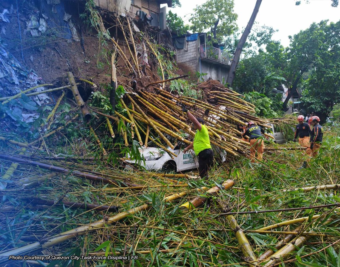 Sinabi sa ulat ng QCPD, nangyari ang pagguho ng lupa dakong alas-6:20 ng umaga, sanhi ng natumbang mga puno ng kawayan na pansamantalang humarang sa isang bahagi ng Don Vicente Street.