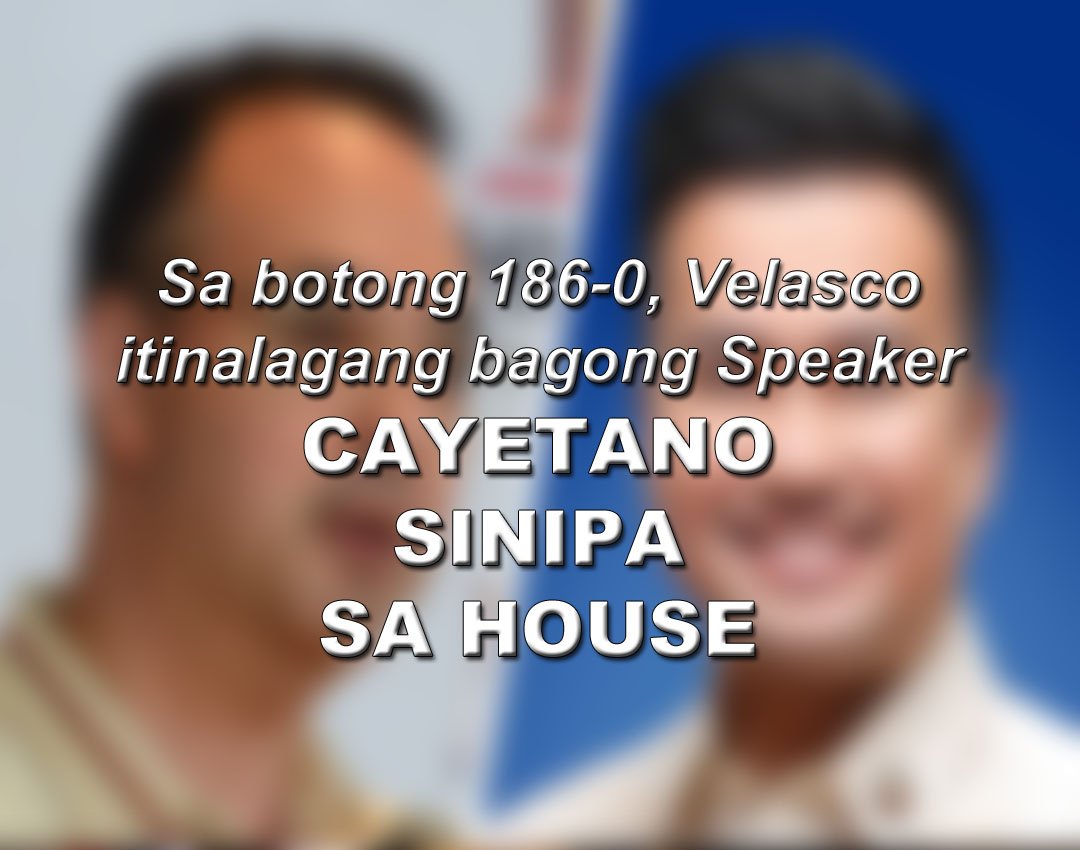 SINIPA bilang Speaker ng mababang kapulungan ng Kongreso si Taguig-Pateros Rep. Alan Peter Cayetano sa session ng grupo ni Marinduque Rep. Lord Allan Velasco sa Celebrity Sports Plaza sa Quezon City kahapon (Lunes).