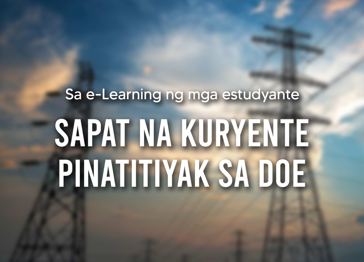 HINILING ni Senador Sherwin “Win” Gatchalian sa Department of Energy (DOE) na tiyakin na may sapat at tuloy-tuloy na serbisyo ng elektrisidad sa bawat tahanan na magagamit ng bawat estudyante sa alternative learning modalities habang naghahanda ang mga paaralan sa “new normal” na sistema ng edukasyon.