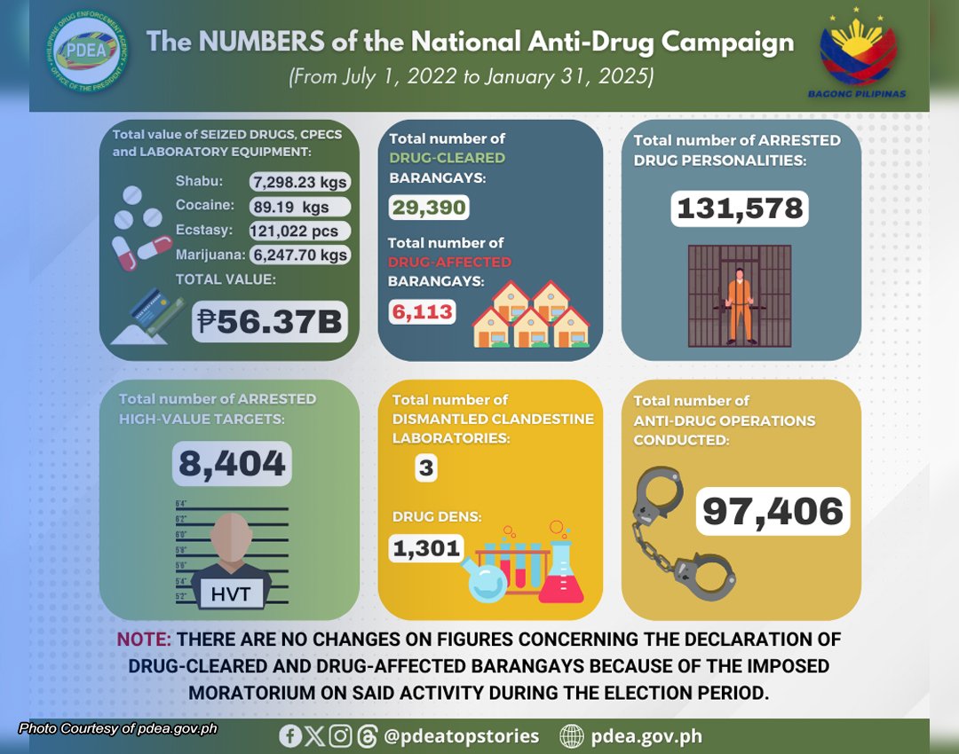 Ayon sa datos ng PDEA, ang bulto ng nakumpiskang illegal drugs ay resulta ng mahigit 97,000 anti-drug operations.