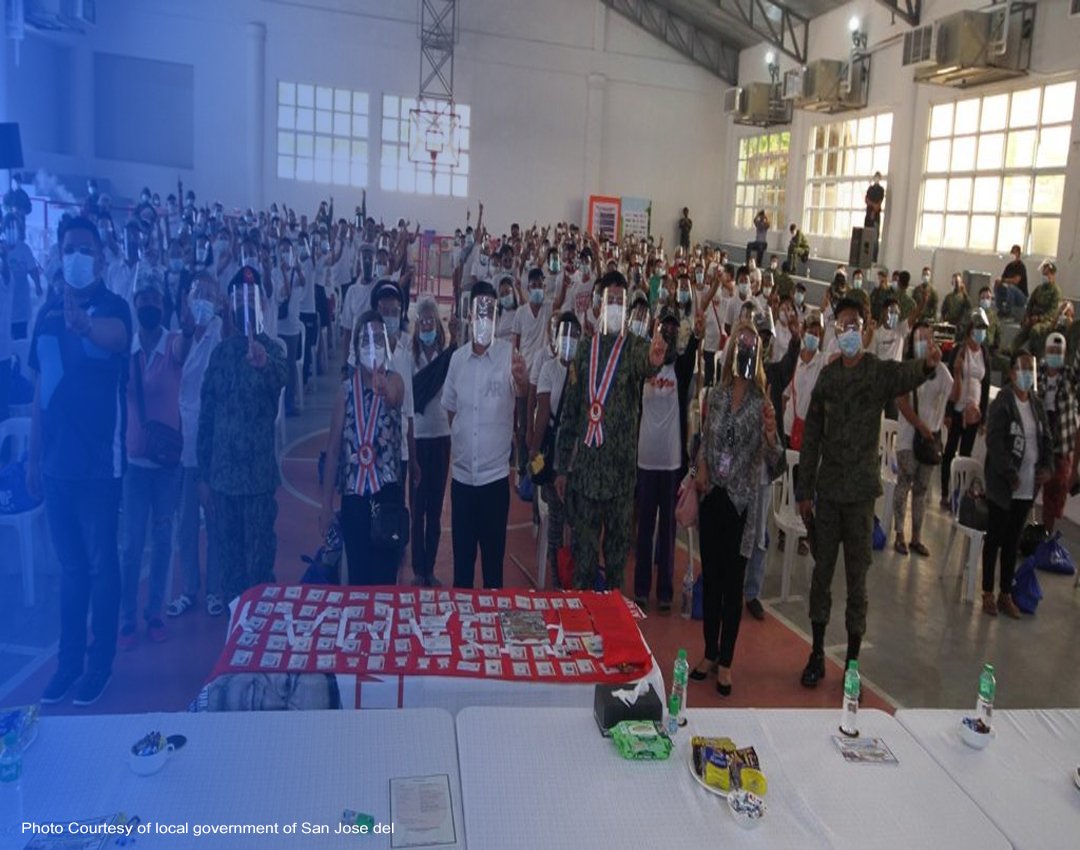 Ang naturang seremonya ay pinangunahan ni P/Gen. Valeriano De Leon, Director ng PNP Region 3, SJDM Mayor Arthur Robes, Bulacan Provincial Director P/Col. Lawrence Dalipe at iba pa. Isinauli ng mga nagbalik-loob na miyembro ang kanilang IDs sa dating kinaaanibang grupo at nanumpa ng katapatan sa Republika ng Pilipinas bilang tanda ng kanilang pagbawi ng suporta sa komunistang grupo.