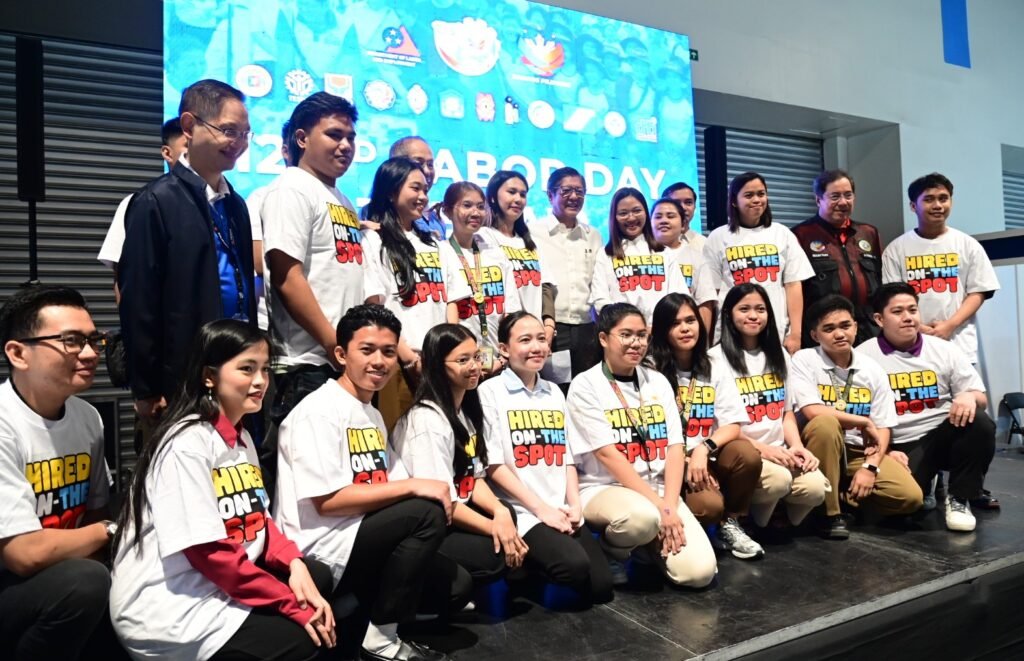 The nationwide SM job fair results in 2,091 on-the-spot hires, and several of these successful applicants pose for a photograph with President Ferdinand “Bongbong” Marcos Jr., Department of Labor and Employment (DOLE) Secretary Bienvenido Laguesma, Technical Education and Skills Development Authority (TESDA) Secretary Kiko Benitez, and Department of Health (DOH) Secretary Dr. Ted Herbosa.