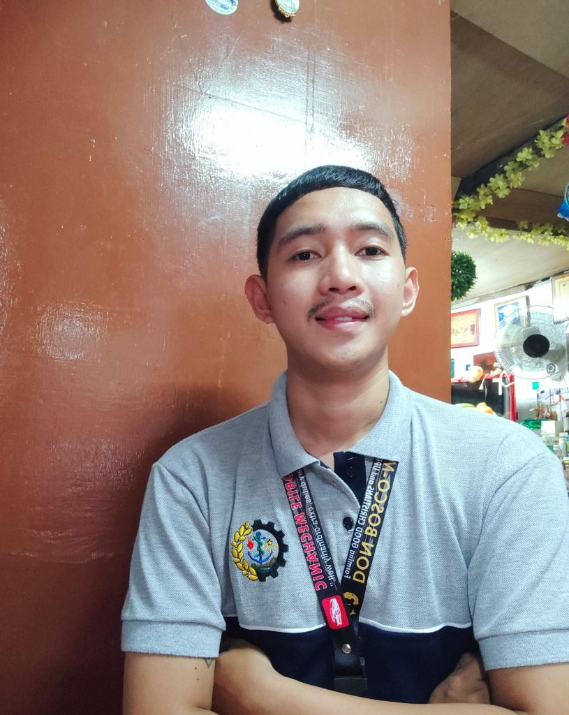 Another current tech-voc scholar is Jeorge Angelo Madrid. He is also studying Automotive Mechanic course at the Don Bosco Makati. His father works as a painter of houses and buildings while his mother works at the Department of Social Welfare and Development. Jeorge is the youngest and most of his five siblings already have their own families.