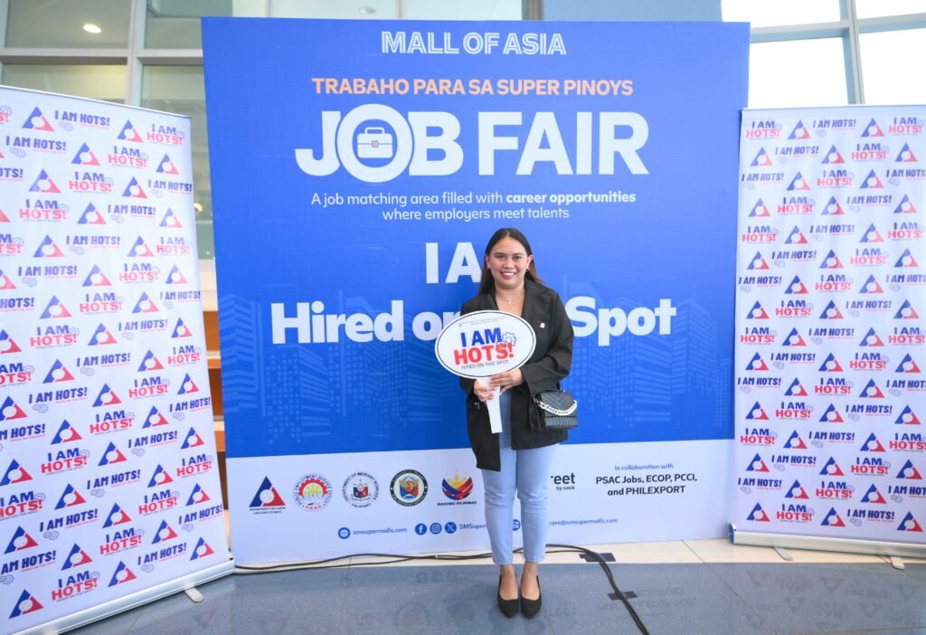 A successful hired-on-the-spot applicant beams with excitement after securing a new employment opportunity at the Job Fair in SM Mall of Asia.