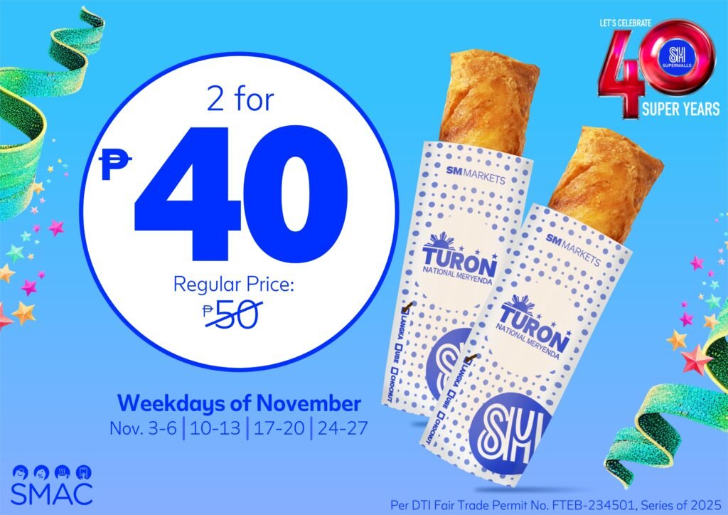 Promos are also available online, shop at smmarkets.com.ph and get a free item with a minimum P1,500 inclusive of any 40th Anniversary promo participating items until November 15.