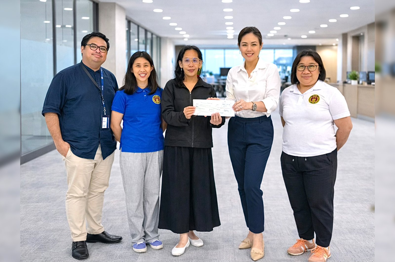 SM Smart City AVP and Head of Corporate Communications and PR Rida Reyes Castillo (second from right) and Senior PR Manager Kirk Maurice Campos (far left) formally turned over the scholarship assistance to UPLB Vice Chancellor for Student Affairs Dr. Janette Malata-Silva (center) with Office of Scholarship and Grants Coordinator Ivy Selarde (right).