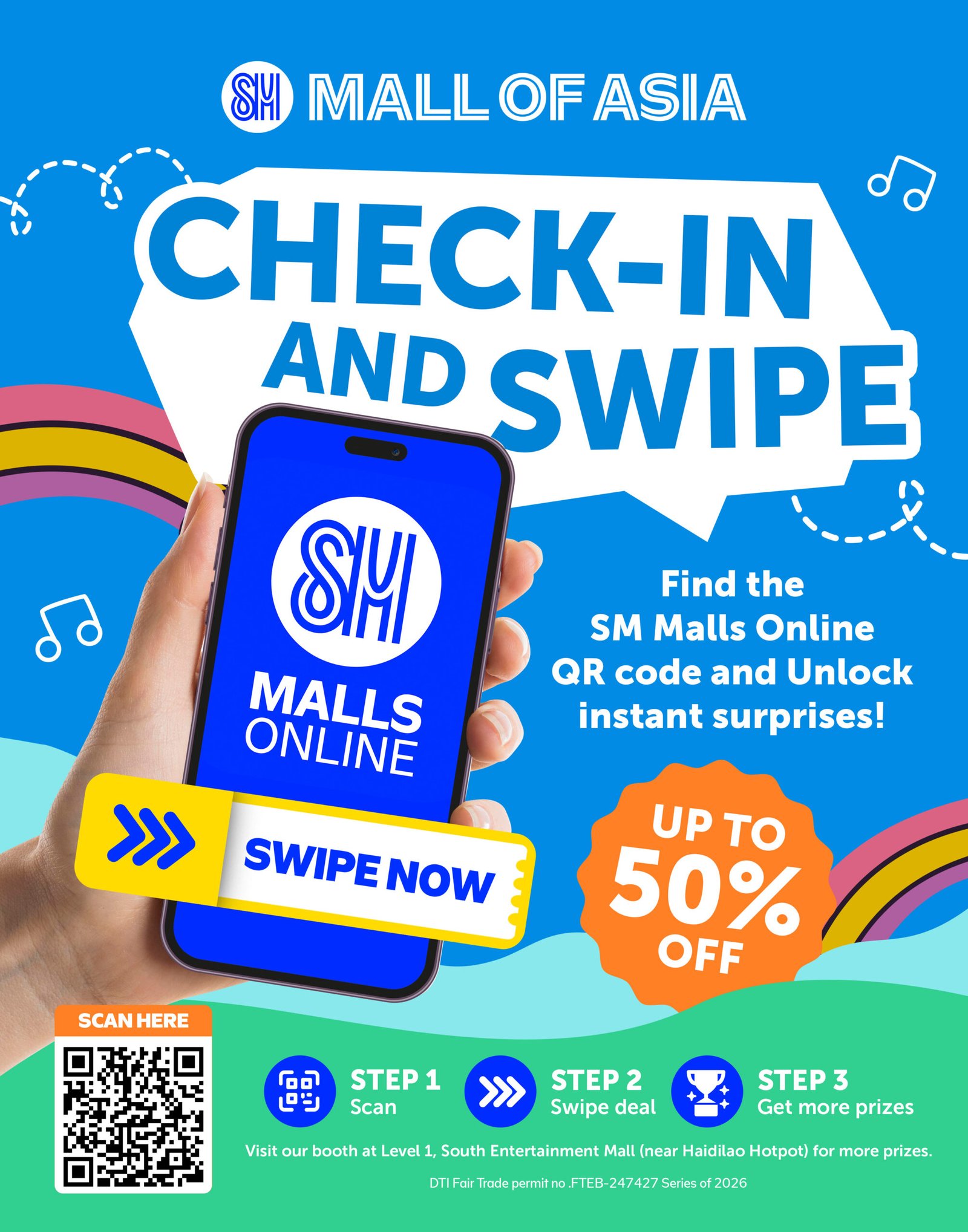 Check in and Swipe coupons on the SM Malls Online app to save on dining and shopping at SM malls. Download the app now and enjoy your most loved mall, SM. SM Supermalls.
