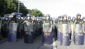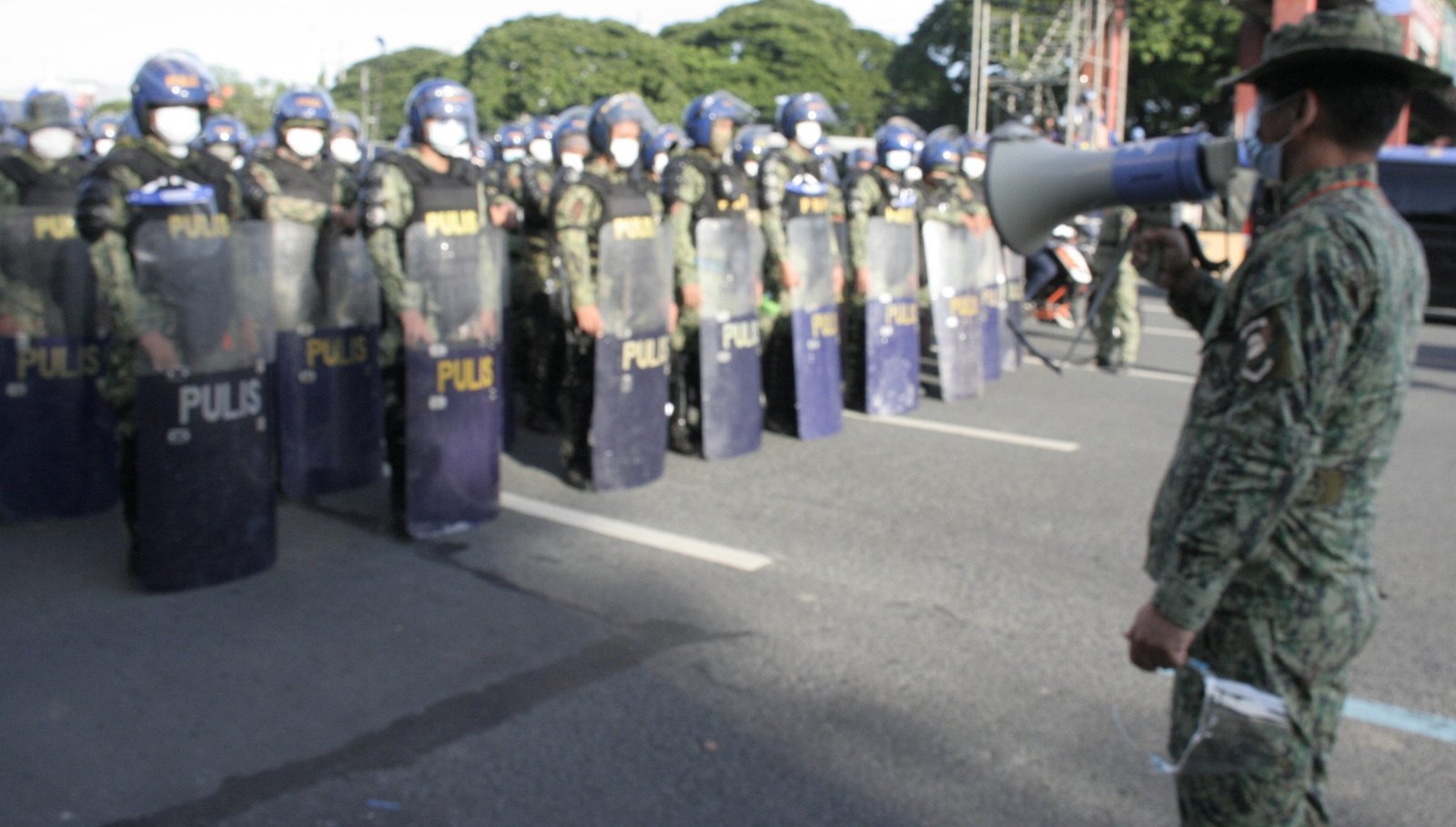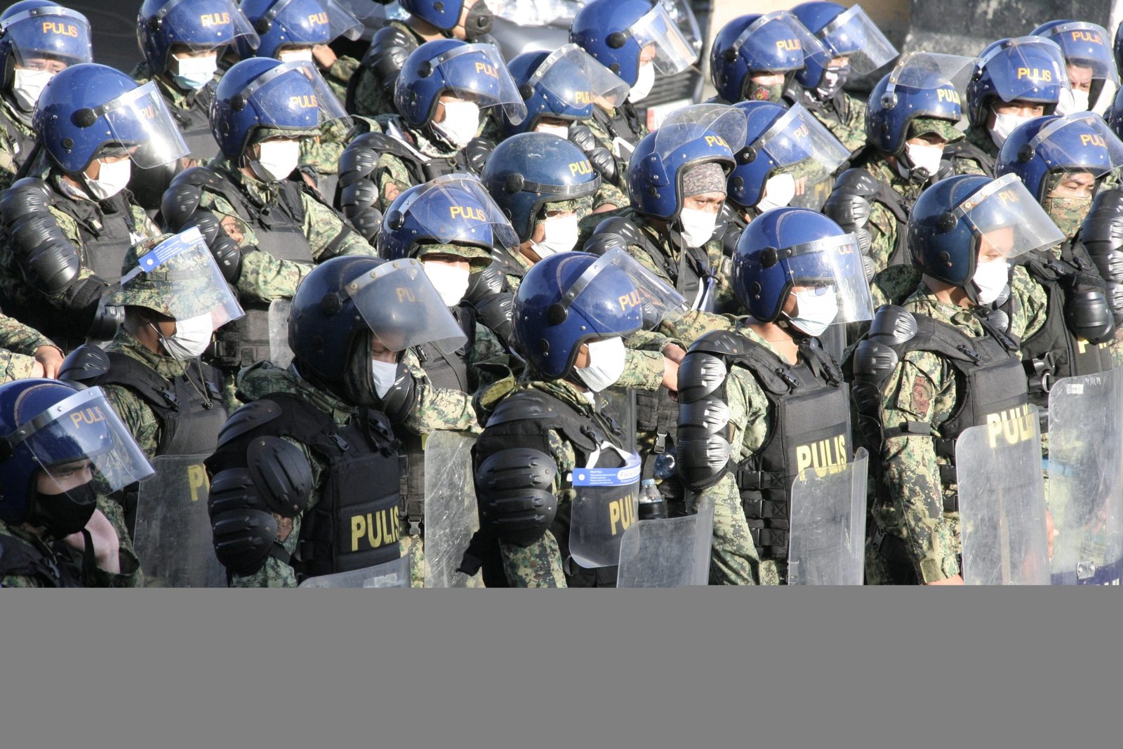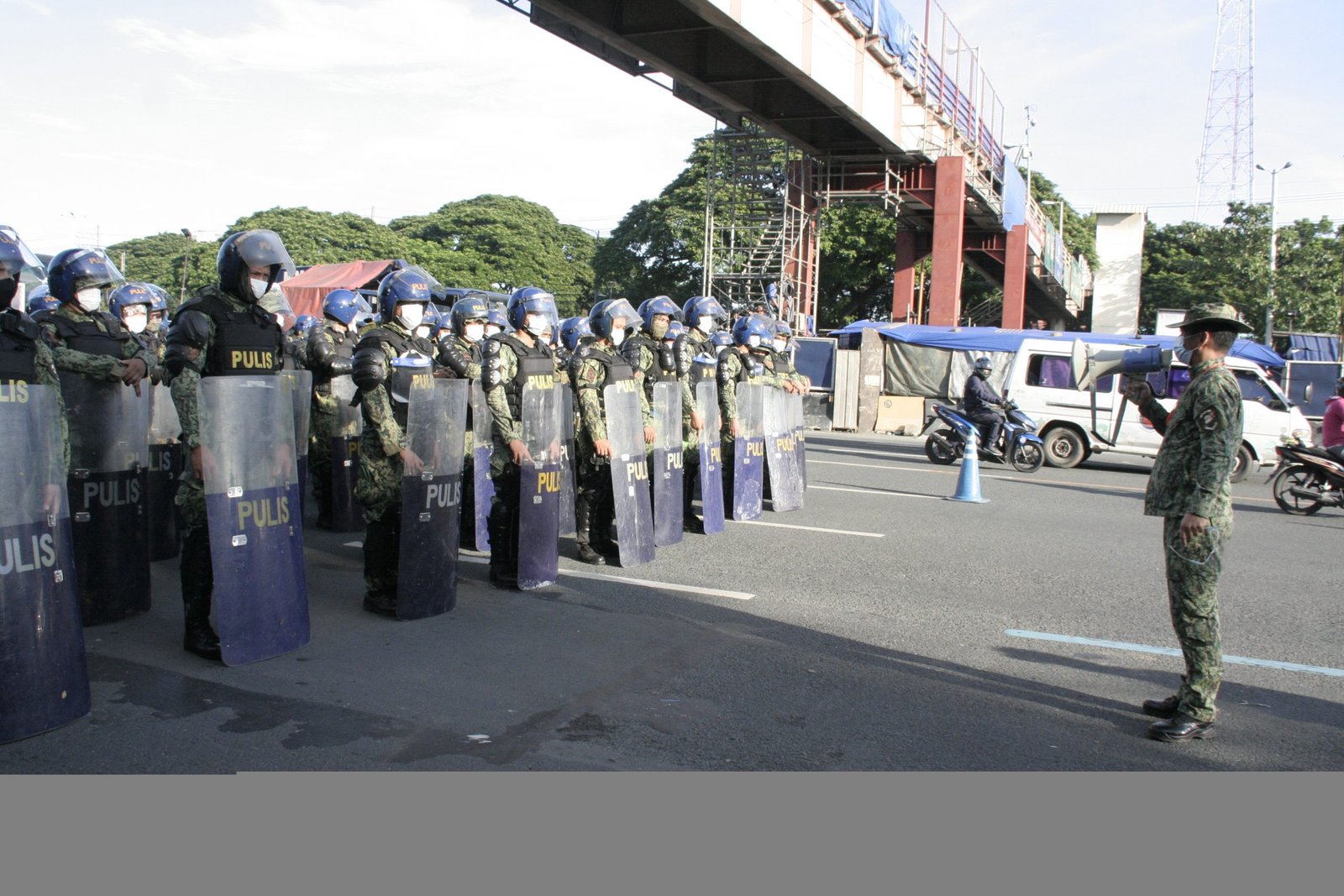 MAAGA pa lang ay handa na ang mga tauhan ng PNP NCRPO para harangin ang anumang grupo na magtatangkang magmartsa patungong House of Representatives para sa ikalimang State of the Nation Address ni Pangulong Rodrigo Duterte. (ED CASTRO)