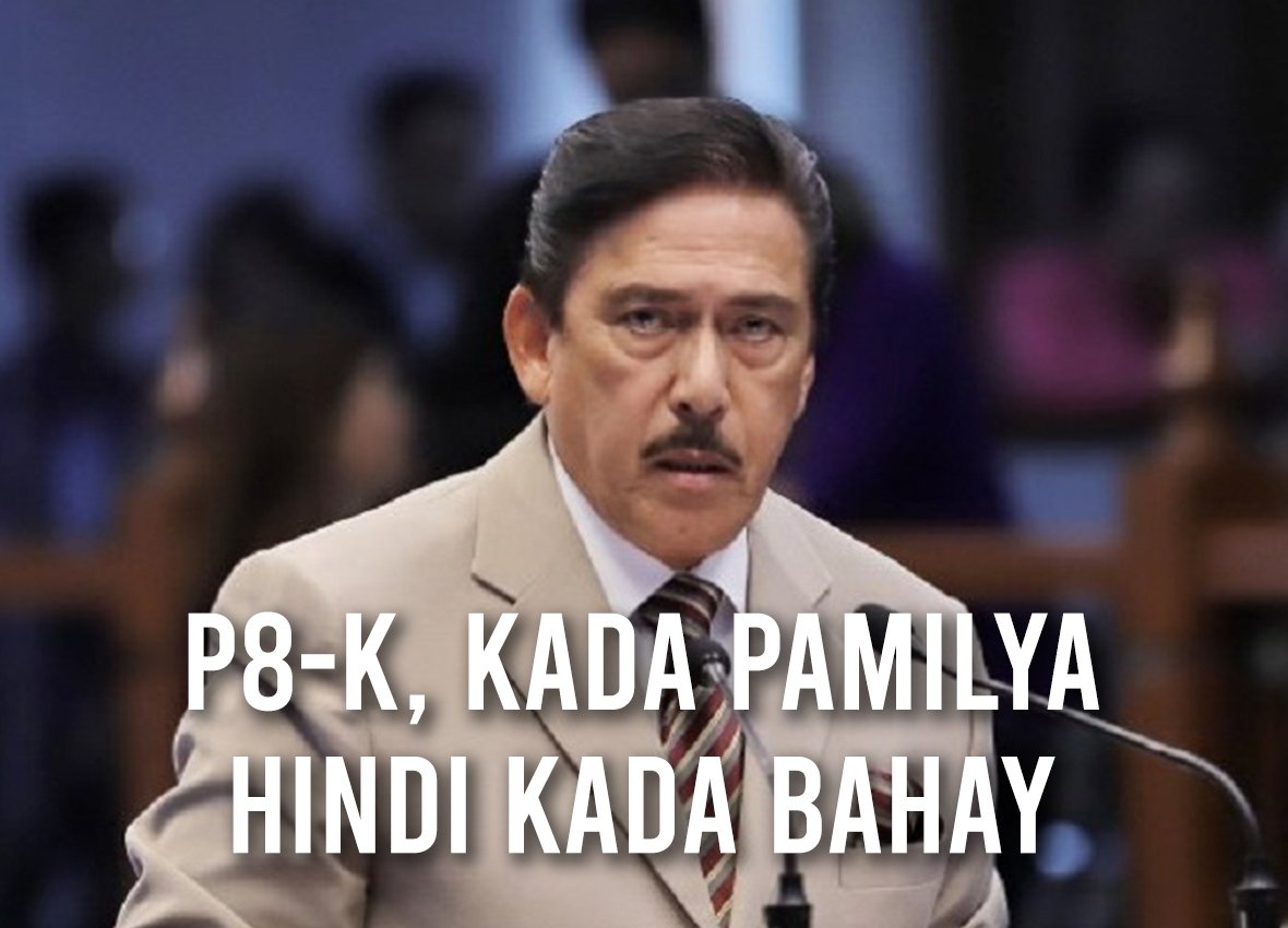 Sa panayam, sinabi ni Sotto na kahit tatlo ang bilang ng pamilya sa bawat bahay, bibigyan ng tig-P8,000 sila, hindi bawat bahay ang bigayan kundi bawat pamilya.