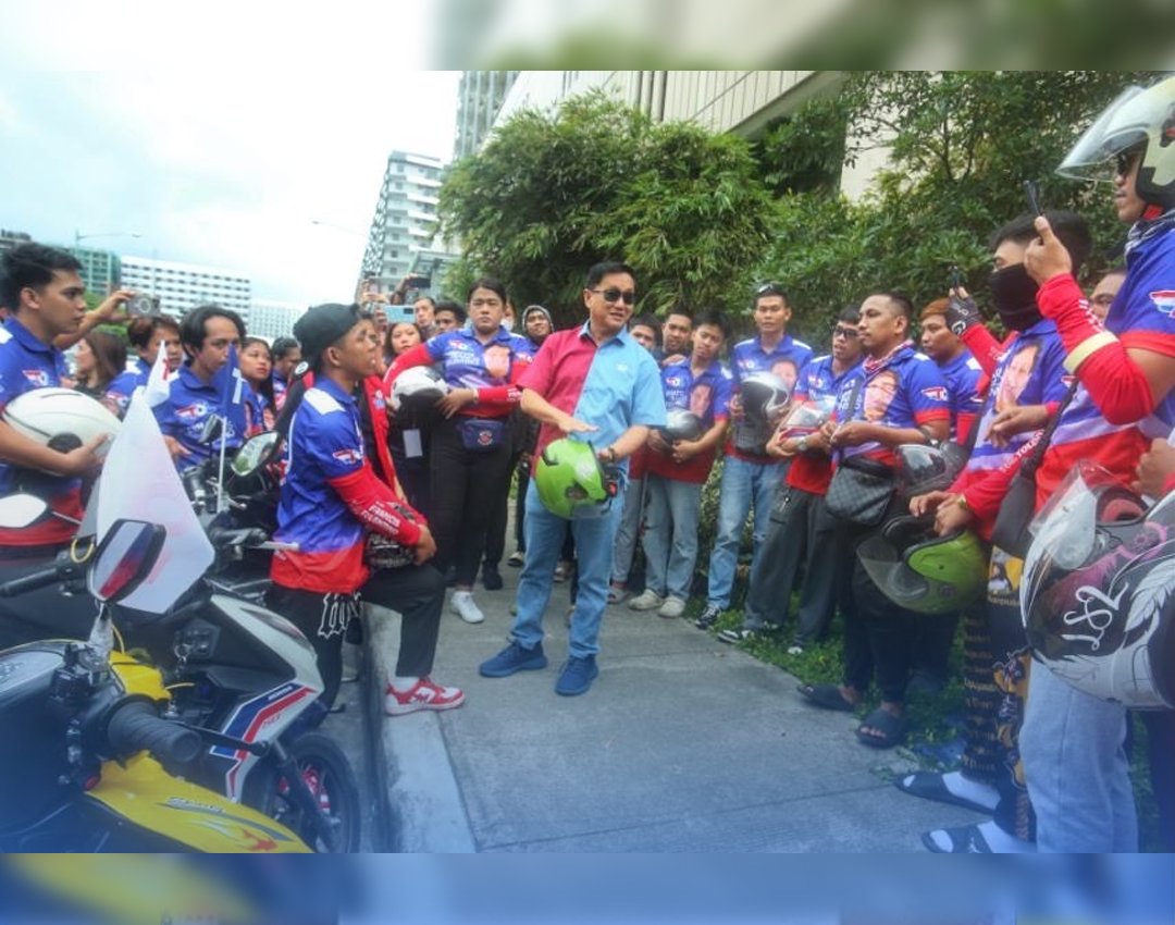 SINALUBONG ni Senator Francis ‘Tol’ Tolentino ang mga rider na galing sa iba’t ibang lugar sa Metro Manila.