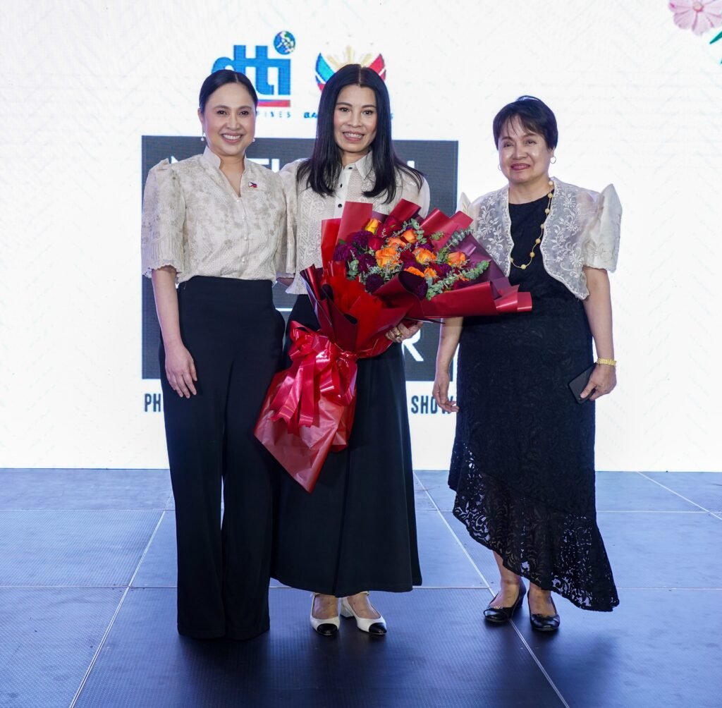 (L-R): Department of Trade and Industry (DTI) Undersecretary for Micro-, Small, and Medium-Sized Enterprises (MSME) Development Group Cristina Roque, Guest of Honor Winnie Chua-Go, and DTI-Bureau of Market Development, Promotions, and One Town, One Product (OTOP) Philippines Director Marievic Bonoan