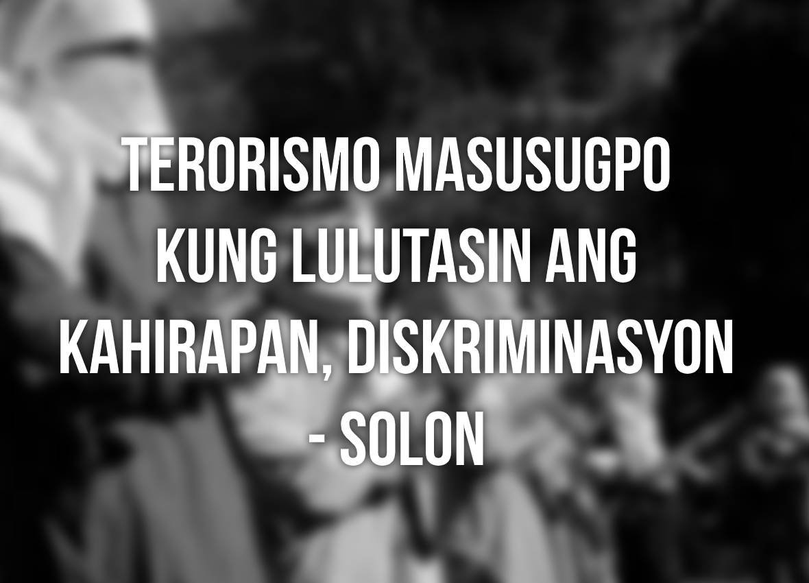 TERORISMO MASUSUGPO KUNG LULUTASIN ANG KAHIRAPAN, DISKRIMINASYON – SOLON