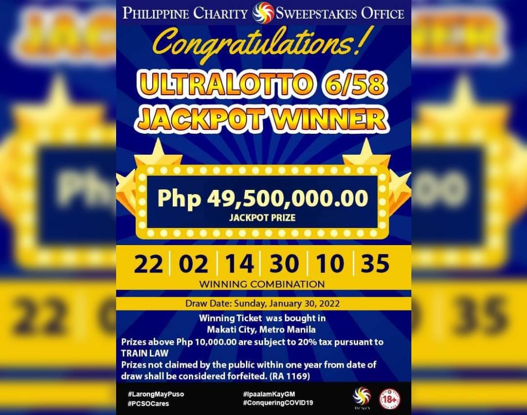 ULTRALOTTO 6/58 JACKPOT WINNER