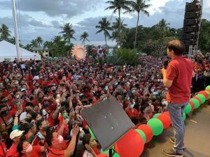 ISANG makasaysayang pagtatagpo ng mga tagasuporta nina UniTeam Presidential aspirant Ferdinand ‘Bongbong’ Marcos Jr. at Vice Presidential bet Sara ‘Inday’ Duterte ang naganap noong Martes ng hapon, Nobyembre 30, 2021, sa pinakamahabang tulay sa bansa, ang San Juanico bridge, na nagdudugtong sa probinsya ng Leyte at Samar.