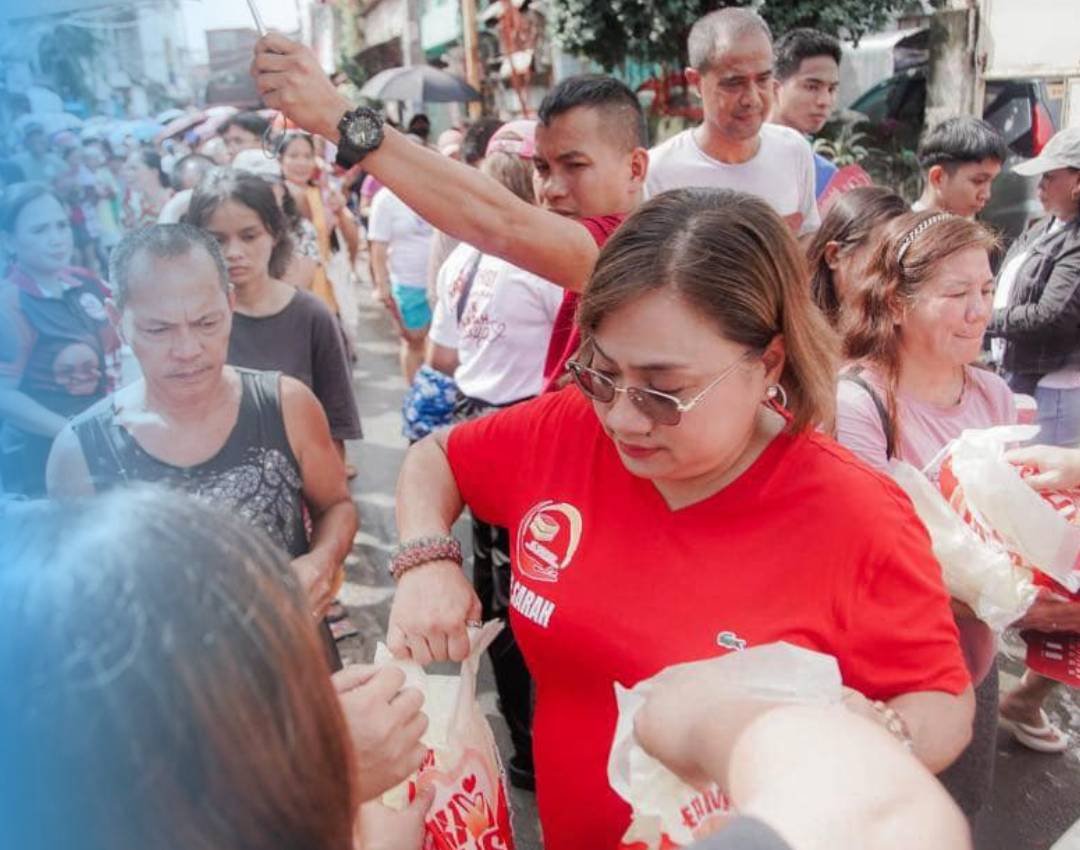 Ang charity worker na si Sarah Discaya habang abala sa pamamahagi ng ayuda sa kanyang mga kababayan.